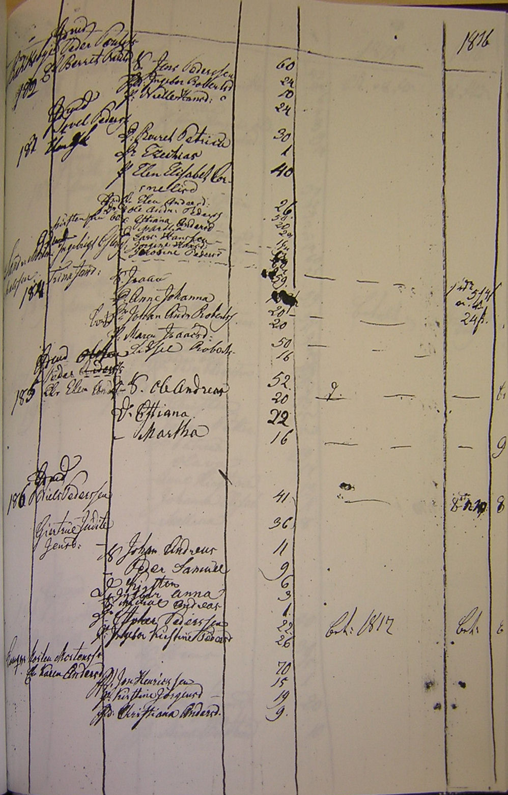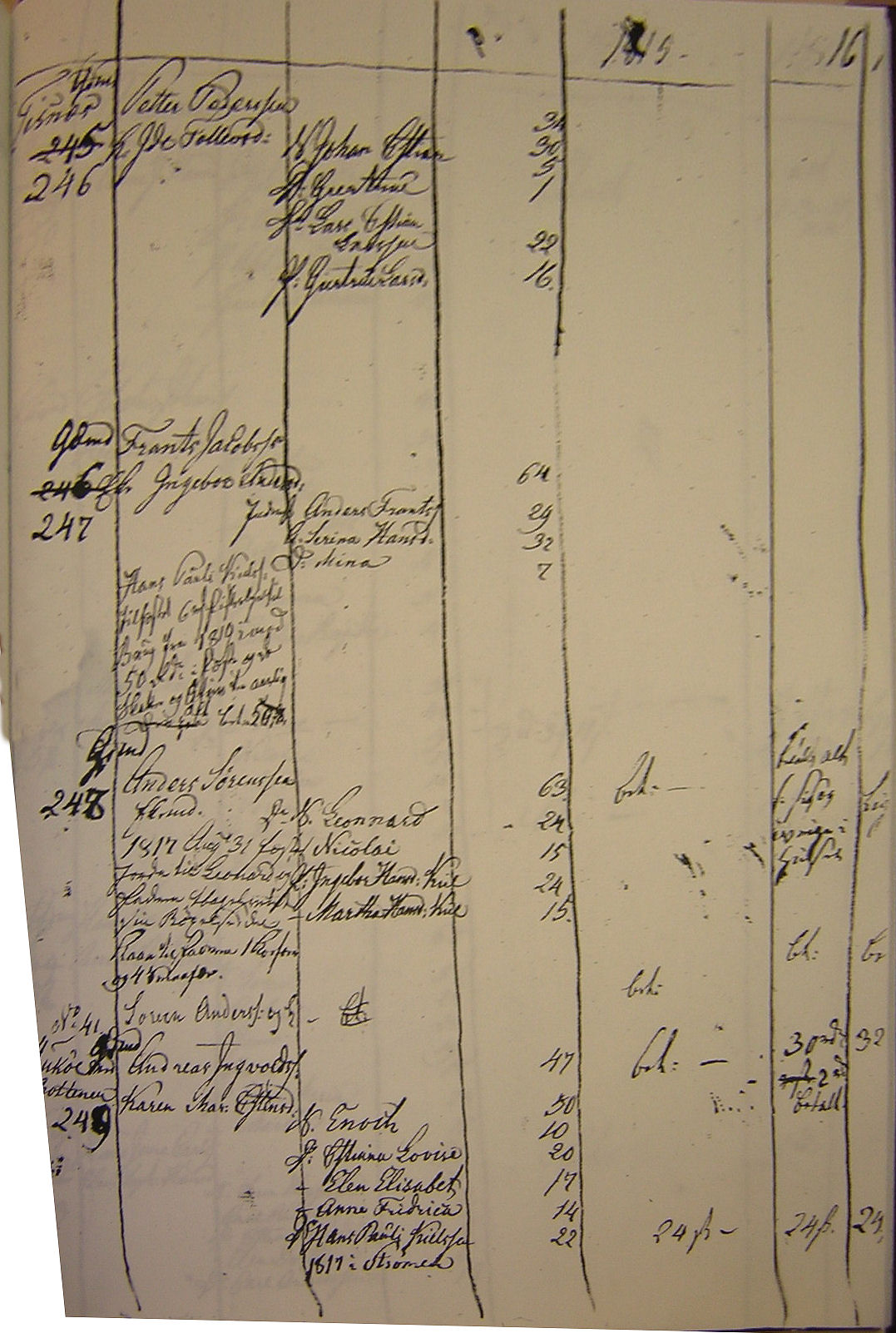 Gårdene 36-38 (Berg/Ramfjord) og og 271 til 273 (Kvalsundområdet) mangler. Sidebildet med de tre siste ble skadet under "transport". Når det gjelde de førstnevnte, så vet jeg ikke om det manglet en side i heftet på statsarkivet, eller om jeg har hoppet over den. Dette korrigeres neste gang jeg er i Tromsø, mao tidligest sommeren 2008. Om noen har tid og mulighet til å avfotografere eller skrive av disse sidene, tar jeg gjerne imot dette på per.inge@gmail.com. Takk til Alvin Andreassen som har hjelpt meg å få gårdene 271-273 på plass. Fornavn som begynner på Christ- er forkortet i tellinga. For oversiktens skyld har jeg valgt å registrere disse navnene fullt ut. |